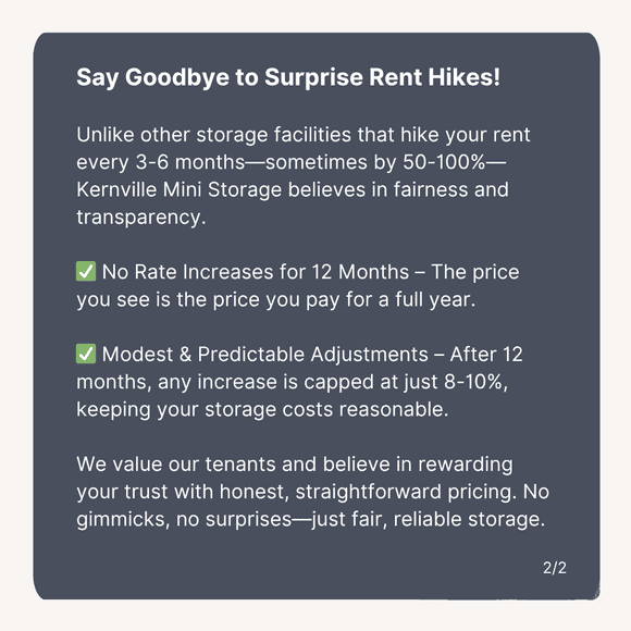 Just as important as having your storage unit near you, is being able to access your storage unit when you need to. At Kernville Mini Storage, we prioritize your accessibility with access hours from 7am-7pm, 7 days a week, we ensure you have the freedom to manage your storage unit on your schedule.